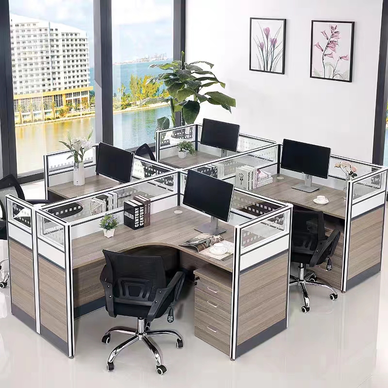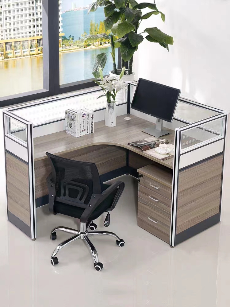 屏風(fēng)辦公工位,桌面1500*1500屏風(fēng)高度1200mm,屏風(fēng)采用鋁合金框架。